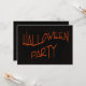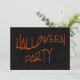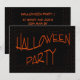 Invitation à la fête d'Halloween orange et noir. Ajoutez vos propres détails d'événement au verso de la carte d'invitation.