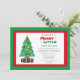 Le thème de Noël joyeux petit baby shower invitation. L'Invitation est décoré sur le thème des vacances rouges et vertes avec des flocons de neige gris, un sapin de Noël et des cadeaux.