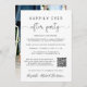 Fuite romantique élégante ou annonce de mariage privé et invitation à une réception ou une fête de célébration de mariage. Sur le devant, "Happily Ever After Party" est écrit dans un mélange de typographie simple et d'un script élégant avec fioritures, et vous pouvez personnaliser votre message et votre invitation plus en détail, créer un code QR lié à votre site web de mariage pour que vos invités scannent pour plus d'informations et répondent en ligne, et ajouter vos noms dans un script ressemblant à une signature. Le verso présente votre photo de mariage préférée, vos prénoms et les dates du mariage et de la réception.