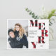 Doté d'un plaid typographique de buffle rouge et noir / à damiers mot motif "MERRY" dans un agencement semi-circulaire cette carte en vichy moderne comprend un grand espace vertical à gauche pour vous la meilleure photo de portrait et le texte noir qui peut être personnalisé. Facile à customiser, faites une grande impression avec cette carte de voeux rustique encore moderne. La couleur rouge peut être facilement changée pour s'adapter à votre schéma de couleurs.