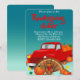 Cette conception d'invitation met en valeur la célébration de Thanksgiving avec un camion rempli de citrouilles, une dinde et des feuilles d'automne.
