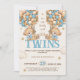 Invitation à la baby shower pour jumeaux garçons sur le thème de l'ours en peluche, mettant en vedette les ours les plus mignons s'envolant haut avec de mignons ballons à air chaud ! Ce design est parfait pour célébrer l'arrivée de jumeaux garçons. De mignons ours en peluche avec des noeuds papillon bleus tiennent des ballons bleus et beige. 💙 💙 N'oubliez pas d'explorer la collection complète !