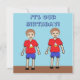 Invitation d'anniversaire montrant les garçons jumeaux avec des yachts sur leur t.shirts
