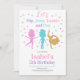 Préparez-vous à vous amuser avec notre Jump Tumble Gymnastique Anniversaire Invitation. Doté d'un trio éblouissant de filles de gymnaste de style parties scintillant, roses, turquoises et dorées, entouré d'étoiles et de confettis ludiques. C'est le moyen idéal pour les amis invitations d'une fête à haute énergie remplie de flips, de roues motrices et d'étincelles. Qu'elle soit une minuscule tumeuse ou une future championne, cet invitation saisit l'esprit de la gymnastique avec une torsion amusante et girly. Laissez votre petite gymnaste briller dès le début, cette invitation démarre la fête avec style, éclat et mouvement ! BRT301