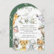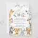 Invite friends and family in style and set the tone for your special day with this charming birthday invitation. Design features jungle animals (giraffe, monkey, zebra, lion, elephant, cheetah, meerkat, rhino) and eucalyptus leaves on white background.
