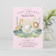 Adorable invitation d'animaux de la jungle avec un éléphant, lion, rhinocéros & girafe entouré d'un feuille de jungle pour un baby shower de filles. Retournez notre invitation pour voir un retour de coordination pour une touche spéciale supplémentaire.