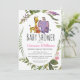 Ce joli design présente un éléphant, une girafe, un tigre et un singe entouré d'un motif en feuilles botaniques. Cette typographie populaire peut être customisée pour changer la couleur et le style de police ou le garder comme il est pour votre commodité. Si mignon pour un garçon ou un baby shower de fille.
