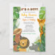 De mignons animaux safari sur un motif jungle avec un adorable petit garçon en safari. Customisez tous les détails de votre événement. Disponible en 3 teintes de peau.