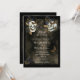 Invitation de mariage magnifiquement sinistre avec la phrase 'Jusqu'à ce que la mort nous sépare', des crânes, une aquarelle sépia sur fond noir. Le dos de l'invitation comporte des fougères et un papillon. Parfait pour un mariage gothique ou Halloween.