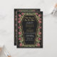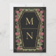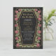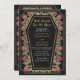 Faites une déclaration audacieuse d'amour éternel. Cette faire-part de mariage gothique présente "Till Death Do Us Part" dans un cadre en forme de cercueil, orné d'épines, de roses et d'accents dorés contre un arrière - plan noir. Parfait pour une fête romantique ! Personnalisez le texte, la police et la couleur arrière - plan en fonction de vos préférences de conception. Objets correspondants dans notre boutique pour un thème de fête complet. Veuillez noter que l'or sur l'invitation n'est PAS un vrai papier d'aluminium et est imprimé en couleurs plates.