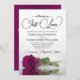 Cette faire-part de mariage romantique dispose d'un seul rose à long tiges de magenta ou de couleur baies, posé sur son côté, mis en miroir dans un bassin d'eau. Le titre est écrit en lettres de script élégantes et dit : Rien de fantaisie, Juste l'amour. Le dos est un cassis marbré violet ou rouge-violet avec un bouquet de roses et espace pour les détails mariages y compris un code QR où vos invités peuvent obtenir plus d'informations et/ou RSVP en ligne. Cet invitation est une merveilleuse combinaison de moderne et intemporelle - une façon parfaite d'invitation vos amis et familles pour partager votre joie dans votre journée spéciale!