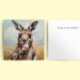 Faites rayonner la joie de l'été avec cette carte de vacances charmante et artistique "Kangourou mangeant une glace". La couverture présente une peinture à l'huile de haute fidélité de style impressionniste avec des coups de pinceau riches et visibles, représentant un kangourou tenant un cône de glace rose sur un ciel doux et ensoleillé de l'outback. Cette carte au format carré est entièrement personnalisable ; tandis que l'œuvre d'art vibrante fait une déclaration audacieuse sur la couverture, l'intérieur est préformaté avec un message clair "Joyeuses fêtes d'été !" que vous pouvez facilement modifier ou remplacer par votre propre note personnalisée. C'est le choix idéal pour ceux qui cherchent à envoyer un message de vœux unique et artisanal qui combine le caractère de la faune avec une ambiance estivale ludique.
