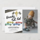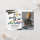 Boys racing car birthday invitations featuring a simple white background, a photo of the child, 4 watercolor race cars, roads, checkered flags, a trophy, and a kids birthday celebration template that is easy to customize.