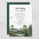 Invitez vos proches à célébrer votre mariage intime avec cette invitation de réception rustique des montagnes Rocheuses. Avec un paysage sauvage magnifiquement peint avec des arbres à feuilles persistantes à l'aquarelle, des oiseaux s'élevant dans les airs et des montagnes majestueuses, le design est posé sur un fond de papier kraft clair pour une sensation naturelle et en plein air. Les cartes de réponse sont disponibles séparément.