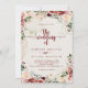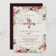 La calligraphie florale d'été rustique mariage d'invitation est parfaite pour un mariage simple. Le design est composé de fleurs d'aquarelle bordeaux, roses et rousses avec des feuilles verts dans un arrière - plan verni brun.