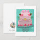 Grandiose et orné, ce morceau présente un gâteau à trois étages imposant dressé sur un fond sarcelle riche. Le contraste entre l'arrière-plan profond et les roses roses luxuriantes et réalistes crée une profondeur visuelle époustouflante.