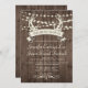 Bois de cerf de style rustique "La chasse est terminée" design avec des lampes sur fond de grange bois, idéal pour un mariage extérieur en soirée, mariage de grange, mariage de automne, mariage campagnard, mariage cowboy.....Veuillez le personnaliser avec votre propre occasion de texte-en conséquence ou cliquez sur le bouton "Customiser" pour aller à l'outil de conception où vous pouvez ajouter du texte, modifier la police, la taille du texte, la couleur du texte, le positionnement du texte et plus encore. Pour les questions et les demandes personnalisées, cliquez sur "contacter" et laissez-nous un message. **Vous trouverez des modèles coordonnés dans la collection ci-dessous ou en collant cette url dans votre navigateur : https://www.zazzle.com/collections/rustic_antlers_hunt_is_over_wedding_collection_1-119776334247121435?rf=238919973384052768&CMPN=share_dclit&lang=en&social=true