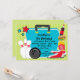 Cette invitation de fête d'anniversaire de bowling de coutume comporte un grand sac de bowling, des goupilles de bowling, une boule de bowling et des chaussures de bowling.