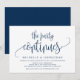 Cette carte d'invitation sur le thème du design de calligraphie moderne (La fête continue) est parfaite pour votre annonce / célébration de mariage en fuite. Ajoutez vos détails dans une police / lettrage Navy bleu assorti.