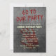 Jetez un zombie - fête d'anniversaire thématique avec ces invitations déplaisantes. A l'exception du sanglant texte "Allez à notre parti" qui descend le mur de béton, tout le texte est personnalisable sur ces invitations effrayants inspirés par les morts-vivants. Sous le texte que vous avez coutume sur le mur gris en détresse, il y a une empreinte sanglante, laissée dans le sang des morts sans cerveau nouvellement tués. Sur le dos, vous trouverez une image générique de carte grungy, où vous pouvez ajouter l'adresse de votre fête effrayante.