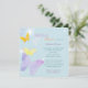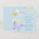 Des papillons aux couleurs chatoyantes et colorées dans les tons jaune, orange et violet + parchemins élégants + arrière - plan bleu pâle sur invitation à la douche nuptiale. Vous et vos invités aimerez le design sophistiqué et fantaisiste du thème papillon ! Tous les exemples de texte peuvent être entièrement personnalisés avec votre propre libellé.