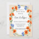 Un délicat tableau aquarelle avec des fleurs sauvages orange vif et bleu doux. L'agencement floral présente des touches complexes, mêlant des tons chauds et cool pour une composition harmonieuse d'inspiration nature. Parfait pour les amateurs d'art botanique et les Mariage.
