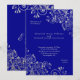 L'argent fleuri de faux tourbillonne et les fleurs dans les coins créent un faire-part de mariage élégant. Sur un arrière - plan de bleu marine c'est une conception renversante pour le jour le plus important dans votre vie. Dénommer classique, dans une couleur riche.