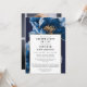 Cette élégante invitation à la vie et à la mémoire florale bleu marine et or peut être personnalisée avec votre information en typographie classique et une photo spéciale au verso. Conçu par Thisisnotme©
