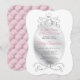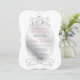Belle et élégante invitation à thème baby shower princesse. Cadre avec couronne et faux bijoux dans une couleur gris / argent et arrière - plan blanc. Le dos de la carte a un motif touffu en rose rose. Personnalisez-les en ajoutant le nom de maman-to-be et l'information de la fête.