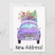 New Address Purple Car with Christmas Toxits Watercolor hand drawn After all the work and stress, tell them you have a new address ! There is no better ( and easier!) way to spread the news than sening them an address announcement Christmas card. There are many different cards available, pick the design and wording you like and add your details to the inside. Browse the store and make your choice: wreaths on doors, ornaments ou collage cards: we have them all!