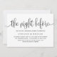 Fêtons la mariée et le marié devant le mariage. Famille Invitation et amis avec cette élégante invitation à dîner de répétition. Il présente une calligraphie lunaire avec typographie classique. Personnalisez en ajoutant des noms, des dates, des adresses et d'autres détails. Ce script La nuit avant l'invitation est parfait pour toute saison et thème mariage.