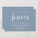 Annoncez votre bonheur à jamais dans le style avec notre design rustique moderne (La Nuit avant Forever) carte d'invitation mariage de la répétition de célébration. Idéal pour les couples qui ont décidé de célébrer la veille de leur grand jour. Avec son design sophistiqué et ludique, cette invitation vous donnera le ton pour un événement inoubliable. La carte d'invitation présente un design bleu poussiéreux, ajoutant une touche d'élégance intemporelle à votre célébration. Conçu par TeeshaDerrick