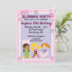 Cette invitation personnalisable de soirée pyjamas comporte des filles avec des coussins utilisant des pyjamas.