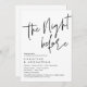Calligraphie romantique moderne, schéma noir et blanc, carte d'invitation pour le dîner de répétition Mariage (La veille). Il est parfait pour votre fête de la répétition mariage, avant votre meilleure journée. Ajoutez vos détails dans les lettres correspondantes.