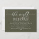 Annoncez votre bonheur à jamais dans le style avec notre carte d'invitation à la répétition mariage de style rustique et vert olive moderne (La nuit avant). Idéal pour les couples qui ont décidé de célébrer la veille de leur grand jour. Avec son design sophistiqué et ludique, cette invitation vous donnera le ton pour un événement inoubliable. La carte d'invitation présente un design de script romantique moderne, ajoutant une touche d'élégance intemporelle à votre célébration. Conçu par TeeshaDerrick