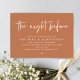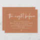 Annoncez votre bonheur toujours après dans le style avec notre design moderne en cuivre rouille brun thème (La nuit avant) mariage de la répétition de fête carte d'invitation. Idéal pour les couples qui ont décidé de célébrer la veille de leur grand jour. Avec son design sophistiqué et ludique, cette invitation vous donnera le ton pour un événement inoubliable. La carte d'invitation présente un design de script romantique moderne, ajoutant une touche d'élégance intemporelle à votre célébration. Conçu par TeeshaDerrick