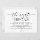 Annoncez votre bonheur toujours après dans le style avec notre carte d'invitation à la répétition mariage de la conception moderne de thème noir et blanc (La nuit avant). Idéal pour les couples qui ont décidé de célébrer la veille de leur grand jour. Avec son design sophistiqué et ludique, cette invitation vous donnera le ton pour un événement inoubliable. La carte d'invitation présente un design de script romantique moderne, ajoutant une touche d'élégance intemporelle à votre célébration. Conçu par TeeshaDerrick