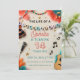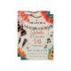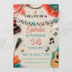 Invitation vibrante et bohème-chic pour les 14 ans "Ophelia", avec un thème "Showgirl d'anniversaire" avec des éléments musicaux comme un tourne-disque et un microphone, accentué par du corail, du sarcelle, des plumes et des perles.