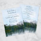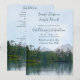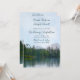 Cette combinaison pittoresque carte de paysage / fiche de détails présente l'image d'un lac légèrement ondulé mais calme, avec des plantes vertes luxuriantes, des cèdres et des structures rocheuses réfléchies sur sa surface, et des montagnes lointaines sous un ciel bleu avec des nuages clairsemés du point de vue d'un kayak de pagaie sur le lac ou d'un randonneur sur la rive opposée - polices mixtes texte est un bleu turquoise coordonné - personnalisateur coordonné - personnalisez les détails le devant de la carte; des détails descriptifs supplémentaires se trouvent à l'arrière de la carte - ajouter facilement un code QR du site Web à l'aide de l'outil de design de Zazzle - par katz_d_zynes