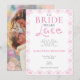 This romantic lace bridal shower invitation features delicate pink lace detailing, refined typography, and a couture-inspired headline—perfect for a sweet soirée, garden gathering, or elegant luncheon.