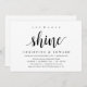 Moderne rustique, carte d'invitation sur le thème du script noir (avec le titre de la carte: Laissez l'amour briller). C'est parfait pour votre réception d'élopement de mariage / fête de célébration après le mariage. Ajoutez vos coordonnées dans une police / lettrage noir assorti.