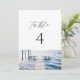 This wedding table number features a watercolor painting of a peaceful lake pier. This table number makes the perfect addition to your lake themed wedding or any other special event.