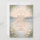 A serene lakeside scene under a soft twilight sky, designed for couples drawn to nature, stillness, and quiet romance. This design blends misty blue tones, reflective water, and a peaceful forest backdrop for an elegant outdoor feel. Perfect for a lakeside, mountain, or destination celebration with a timeless, atmospheric mood.