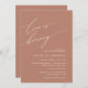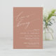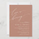 Dégustation de vin de douche nuptiale, bière, fête du whisky. Annoncez votre bonheur toujours après dans le style avec notre carte d'invitation à la célébration de la douche nuptiale en terre cuite moderne. Avec son design sophistiqué et ludique, cette invitation vous donnera le ton pour un événement inoubliable. La carte d'invitation présente un design de script minimaliste moderne, ajoutant une touche d'élégance intemporelle à votre célébration. Conçu par TeeshaDerrick