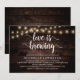 Calligraphie moderne Carte d'invitation nuptiale de douche (L'amour brasse), dans des lampes rustiques à cordes en bois foncé sur le thème. Invitation les invités avec cette carte d'invitation parfaite. Ajoutez les détails de votre douche nuptiale dans le libellé correspondant.