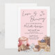 Café rose mignonne et Fête des mariées Cappuccino Invitation Brunch. Célébrez la future mariée avec ce design chaleureux et charmant "L'amour est en train de brasser", parfait pour un rassemblement matinal sincère en son honneur. L'avant présente un arrière - plan blanc propre avec un rectangle rose vif qui forme un cadre blanc doux. En bas à gauche, une tasse de café rose fantaisie remplie de cappuccino prend le devant de la scène, entourée d'un assortiment de gâteaux pour le petit-déjeuner, notamment des crêpes, un croissant, un rouleau de cannelle et des biscuits sur une serviette grise et blanche. Les détails doux dessinés à la main ajoutent une touche ludique et romantique. Le texte commence par "L’amour brasse" en haut dans une écriture manuscrite rose et grise stylée, suivie par "rejoignez-nous pour honorer la mariée à être", avec l’espace pour le nom de la mariée ci-dessous. Cette invitation est entièrement personnalisable pour correspondre à votre style d'événement. Vous pouvez mettre à jour les couleurs, le texte et les détails pour créer l'apparence parfaite. Disponible sous forme de carte imprimée ou de fichier numérique, c’est la façon idéale de donner le ton à une douche nuptiale remplie d’amour et de chaleur.