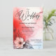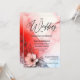 Une faire-part de mariage romantique avec un beau mélange de tons rouges vifs et de couleurs douces, décorée de motifs floraux époustouflants.