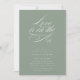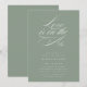 L'amour est dans l'air avec cette simple et élégante invitation à la douche nuptiale. Il est conçu dans le vert sage classique, avec une calligraphie géante et une touche minimaliste. Parfait pour des fêtes économiques, cet invitation abordable conviendra aux douches nuptiales, aux douches en couple et même aux baby showers. Chic, élégant et sans effort intemporel !