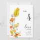 Aidez vos invités à trouver leur siège dans le style avec notre carte de Fête des mariées de Fleur sauvage de printemps "Love is in Bloom". Cette charmante carte de numéro de table est la façon parfaite d'afficher vos numéros de table. Il présente un design époustouflant où le numéro de table est affiché dans un script audacieux et élégant. Cette carte est entièrement personnalisable avec le numéro de table, le nom de la future mariée, la date de l'événement, et le beau titre "L'amour est en fleur". Il est joliment décoré avec notre art fleur sauvage printanier, créant un joli décor de fête. Ce qui rend cette carte de numéro de table plus spéciale est son design à deux côtés! Le beau design floral et le texte sont mis en miroir à l'arrière, ce qui permet à vos invités de voir facilement le numéro de table de tous les angles. Cela garantit un affichage sans faille de n'importe quel angle lorsqu'il est placé dans les supports de cartes ou de clip (non inclus). Idéale pour les fêtes de boho ou de rustique, cette carte personnalisée s'harmonise parfaitement avec notre suite complète de produits de douche nuptiale "Love is in Bloom". Créez un look joliment assorti et cohésif pour toute votre célébration. Guidez vos proches à leur place avec cette carte de numéro de table charmante et fonctionnelle !