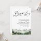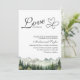 Une élégante invitation de mariage avec des montagnes aquarelles et des pins que vous pouvez customiser avec vos détails.